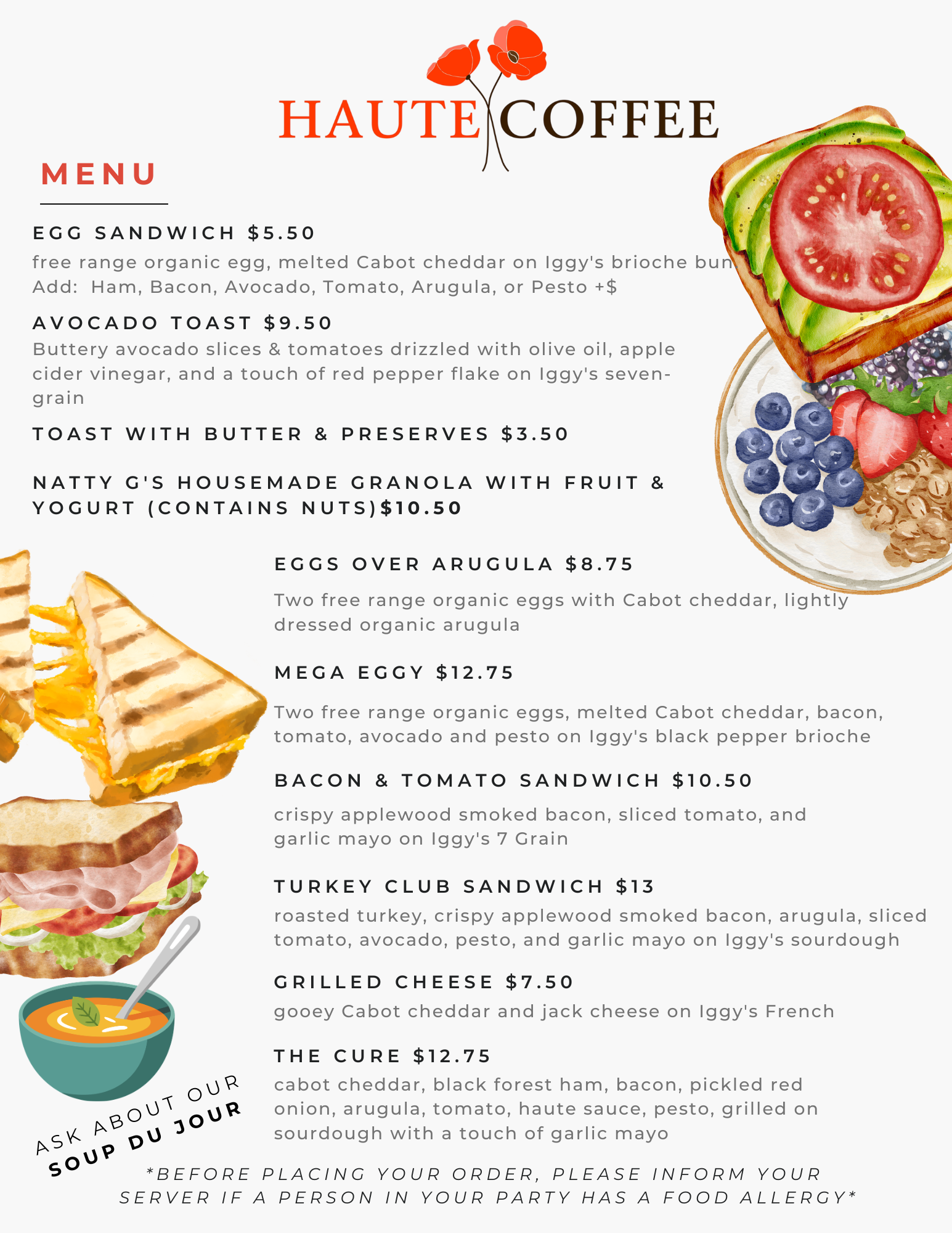 *Before placing your order, please inform your server if a person in your party has a food allergy*